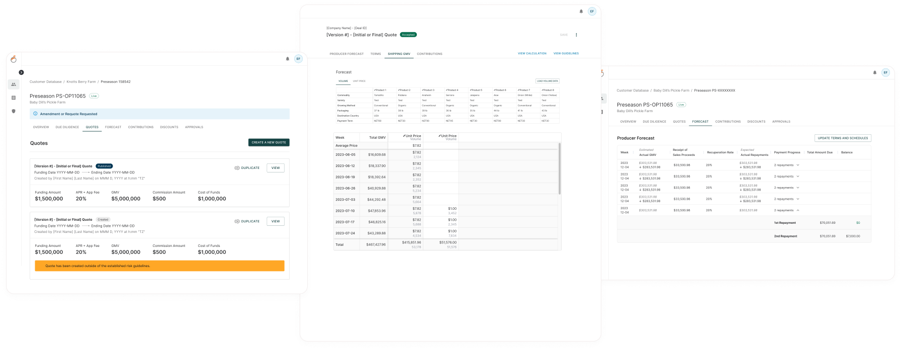 Pre-Season, the top-grossing financial product at ProducePay, was burdened by outdated systems—too many spreadsheets, no documented process, and inconsistent information. This made it difficult to track finances accurately and scale operations. To minimize risks and meet growing demand from numerous clients, we needed to digitize the process.